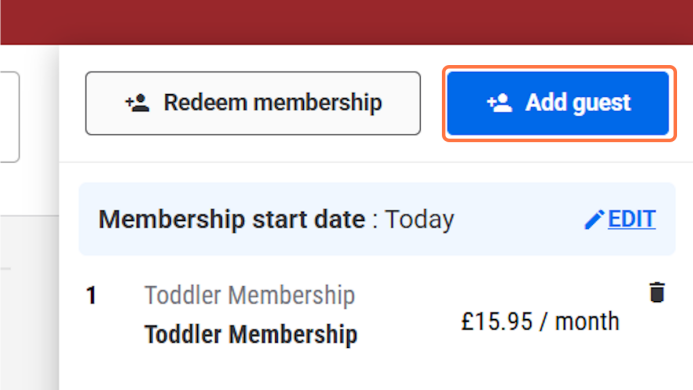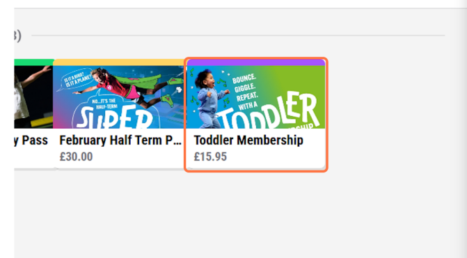 Step 3: Select the correct Membership the customer would like to purchase, for this example I am using the 'Toddler Membership'