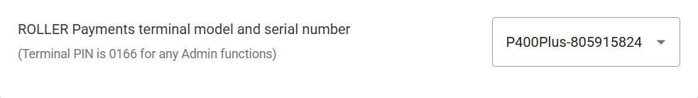 - At the bottom of the hardware section is Roller Payments terminal. You need to make sure this matches the PDQ you are trying to use. You can find the serial number on the back of the PDQ.